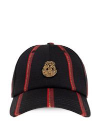 skull-patch baseball cap Highlights - Black - Rear buckle fastening - Curved peak - Vertical stripe pattern Made in Italy Composition Wool 100%