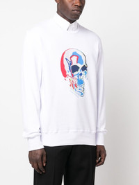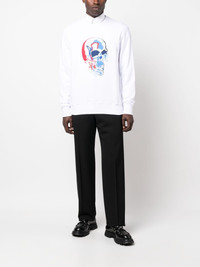 skull-print cotton sweatshirt A recurring motif of Alexander McQueen's collections, the skull reflects the designer's rebellious spirit. A vibrant blue and red iteration stands out against the solid white background in this cotton-spun sweatshirt. Highlights - White/multicolour - Cotton - Skull print to the front - Crew neck - Long sleeves - Straight hem Made in Italy Composition Cotton 100% SIZE & FIT Model measurements Height 6 ft 0 in(1.84 m) Bust/Chest 35.82 in(91 cm) Hips 37 in(94 cm) Waist 28.34 in(72 cm) FittingInformation Designed for a regular fit, offering a comfortable loose fit throughout the body The ribbed hem offers a close, comfortable fit Made from a midweight non-stretch fabric, this piece offers minimal elasticity when worn This piece fits true to size – take your usual size Washing instructions Machine Wash