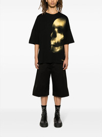 Skull-print cotton T-shirt Alexander McQueen is known for its grunge-inspired designs. This is perfectly illustrated by this black T-shirt. Decorated with a gold-tone skull print to the front, this design reflects the moody aesthetic of the brand. Highlights - Black/yellow - Cotton - Soft jersey - Tonal stitching - Skull print to the front - Logo print to the front - Crew neck - Short sleeves - Straight hem Made in Italy Composition Cotton 100% SIZE & FIT Model measurements Height 6 ft 2 in(1.88 m) Bust/Chest 35.43 in(90 cm) Hips 36.61 in(93 cm) Waist 27.95 in(71 cm) FittingInformation Designed for a relaxed fit, this piece allows for comfort and movement when worn Made from a midweight non-stretch fabric, this piece offers minimal elasticity when worn This piece fits true to size – take your usual size Washing instructions Machine Wash