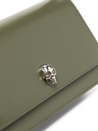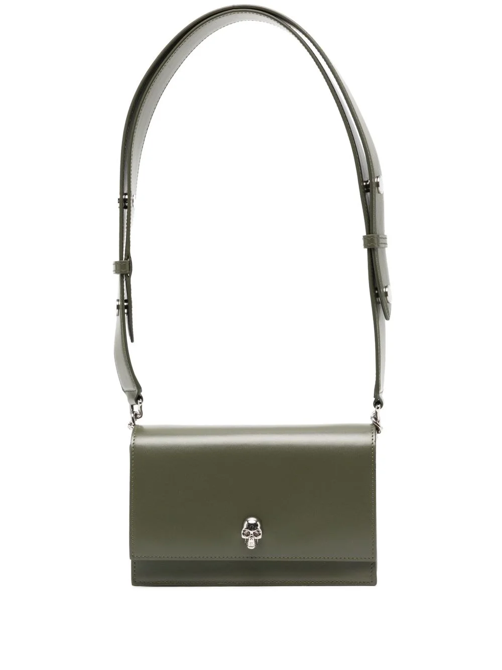 small The Biker Skull shoulder bag Highlights - Dark green - Calf leather - Silver-tone hardware - Skull stud embellishment - Foldover top with press-stud fastening - Adjustable shoulder strap - Internal slip pocket - Main compartment Made in Italy Composition Calf Leather 100% SIZE & FIT Measurement DEPTH 1.96 in(5 cm) HEIGHT 5.11 in(13 cm) WIDTH 7.48 in(19 cm) STRAP 21.65 in(55 cm)