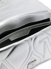 small The Seal shoulder bag Alexander McQueen infuses this shoulder bag with one of its most famous House Codes: the Seal. Intricately intertwining the British designer's initials, it is seen in a silver-tone plaque and softly quilted into the leather. Highlights - Silver-tone - Calf leather - Padded design - Quilted monogram to the front and to the rear - Silver-tone logo plaque to the front - Adjustable detachable shoulder strap - Detachable chain-link shoulder strap - Main compartment - Debossed internal logo - Internal slip pocket - Full lining - Silver-tone hardware - Foldover top with magnetic fastening Made in Italy Composition Outer: Calf Leather 100% SIZE & FIT Model measurements Height 5 ft 10 in(1.78 m) Bust/Chest 32.67 in(83 cm) Hips 35.43 in(90 cm) Waist 23.22 in(59 cm) Measurement DEPTH 2.75 in(7 cm) HANDLE 23.62 in(60 cm) HEIGHT 5.9 in(15 cm) STRAP 63.38 in(161 cm) WIDTH 10.23 in(26 cm)