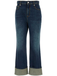 straigh-leg mid-rise jeans Highlights - Indigo blue - Cotton - Denim - Logo patch to the rear - Belt loops - Mid-rise - Straight leg - Front button and zip fastening - Classic five pockets - Turn-up hem Made in Italy Composition Cotton 100%
