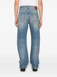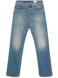 straight-leg jeans Highlights - Powder blue - Button fly fastening - Belt loops - Classic five pockets - Logo patch to the rear Made in Italy Composition Outer: Cotton 100%, CALFSKIN 100% Lining: Polyester 65%, Cotton 35% SIZE & FIT Model measurements Height 6 ft 2 in(1.87 m) Bust/Chest 37.79 in(96 cm) Hips 37.79 in(96 cm) Waist 30.31 in(77 cm) Measurement FRONT RISE 11.81 in(30 cm) INSIDE LEG 34.44 in(87.5 cm) HIPS 40.94 in(104 cm) FittingInformation Designed with a straight leg, these jeans allow for an unrestricted and comfortable fit over the leg Sturdy and hard-wearing, this denim piece offers no stretch