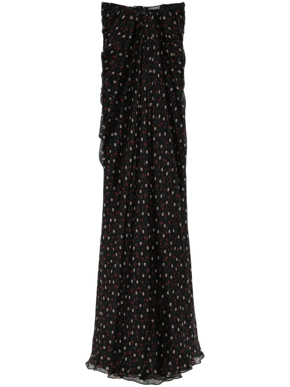 strapless silk dress Highlights - Black/multicolour - Silk - Strapless - Rear zip fastening - All-over floral print - Built-in cups bra - Boned bodice - Full lining - Floor-length Made In Italy Composition Outer: Silk 100%, Polyamide 85%, Elastane 15% Lining: Acetate 75%, Silk 25% SIZE & FIT Model measurements Height 5 ft 9 in(1.76 m) Bust/Chest 32.28 in(82 cm) Hips 35.43 in(90 cm) Waist 25.19 in(64 cm) FittingInformation Designed to be unstructured, offering a loose fit throughout The internal bodice offers support and shape Made from a lightweight non-stretch fabric