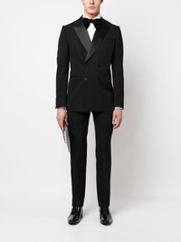 stripe-detail tailored trousers jet black cotton-wool blend side stripe detailing high-waisted belt loops concealed front zip fastening two side slit pockets two rear welt pockets straight leg Made in Italy Composition Lining: Cotton 100%, Cupro 100% Outer: Wool 100% Washing instructions Dry Clean Only