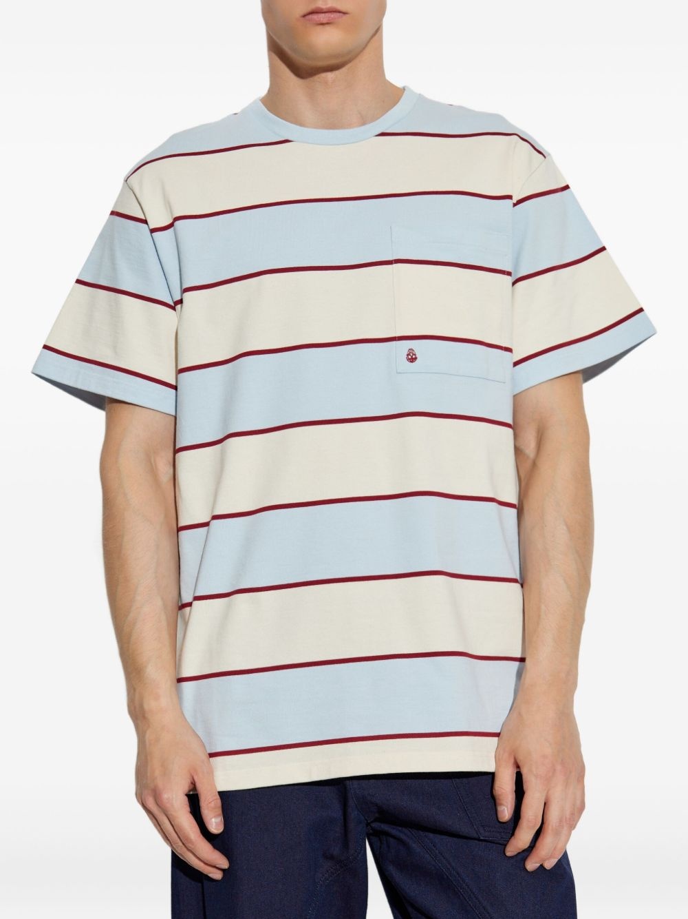 striped short-sleeve t-shirt Highlights - Light blue - Horizontal stripes - Chest pocket - Crew neckline - Straight hem Made in Italy Composition Cotton 100% Washing instructions Read Manufacturer Guidelines