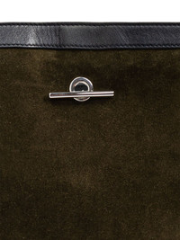 suede tote bag Highlights - Olive green - T-bar fastening - Adjustable top handle - Internal zip-fastening pocket - Logo stamp to the front Made in Italy Composition Outer: Calf Leather 100%, Calf Suede 100% SIZE & FIT Measurement HEIGHT 14.96 in(38 cm) WIDTH 15.74 in(40 cm)