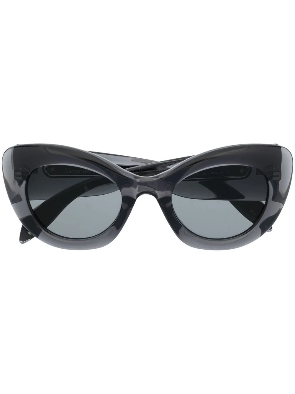 transparent cat-eye frame sunglasses dark grey transparent frame cat-eye frame straight arms curved tips These glasses come with a protective case. Made in Italy Composition Acetate 100% SIZE & FIT Measurement Arm Length 5.7 in(14.5 cm) Bridge Width 0.94 in(2.4 cm) Lens Diameter 2.04 in(5.2 cm) Total Width 5.82 in(14.8 cm)