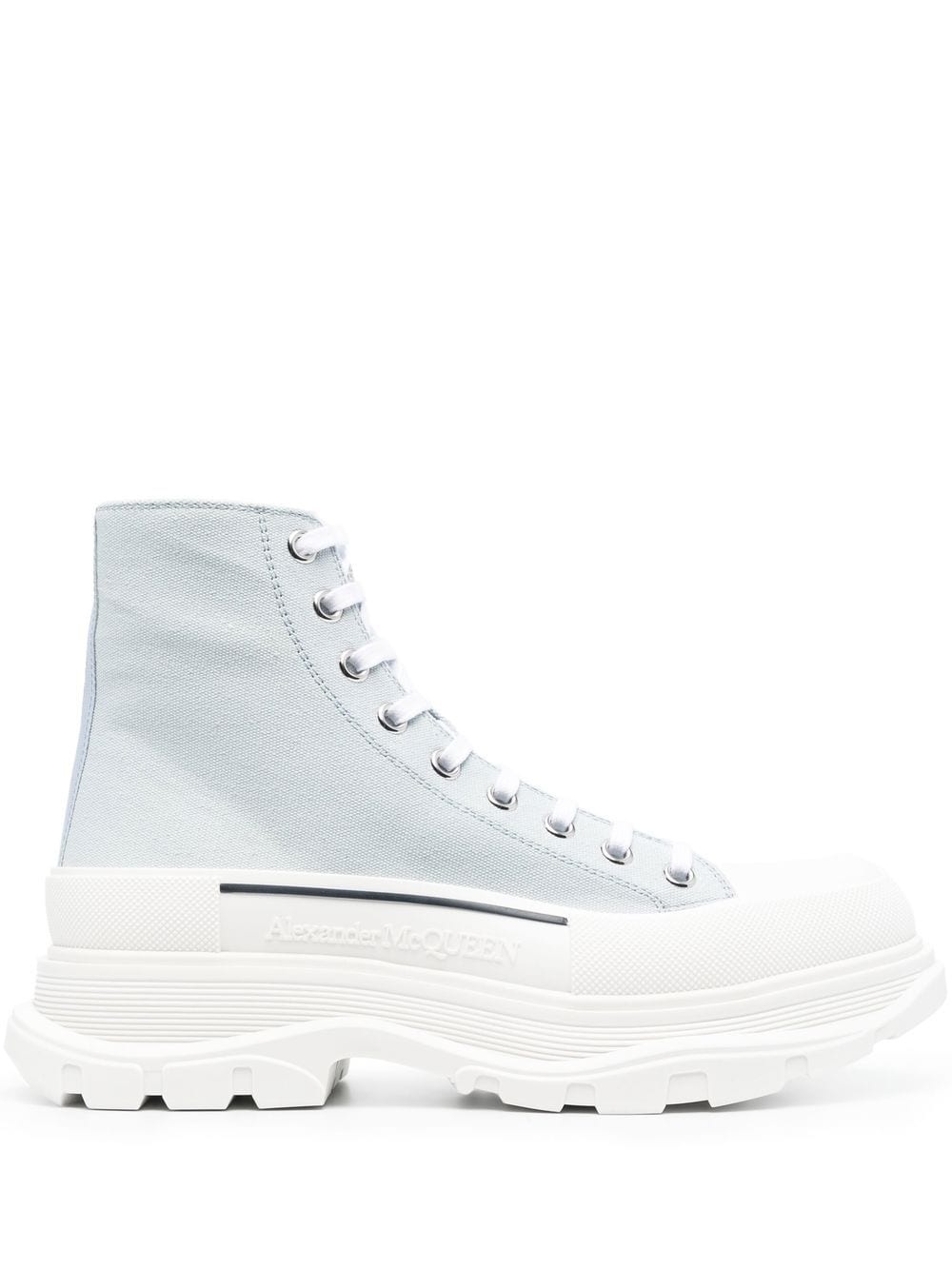 Tread Slick canvas boots light blue canvas panelled design two-tone design logo tape trim to the rear embossed logo to the mid sole front lace-up fastening round reinforced toe chunky rubber sole Made in Italy Composition Sole: Rubber 100% Outer: Fabric 100% Lining: Calf Leather 100% SIZE & FIT Measurement HEEL 1.96 in(5 cm) HEIGHT 5.51 in(14 cm) Sole height 1.37 in(3.5 cm)
