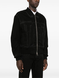 denim bomber jacket Highlights - Black - Cotton - Denim - Padded design - Baseball collar - Two side welt pockets - Long sleeves - Ribbed cuffs and hem - Front two-way zip fastening Made in Italy Composition Outer: Polyester 100%, Cotton 100% Lining: Cupro 100% SIZE & FIT Model measurements Height 6 ft 2 in(1.87 m) Bust/Chest 36.41 in(92.5 cm) Hips 37 in(94 cm) Waist 29.52 in(75 cm) FittingInformation Designed for a relaxed fit, this piece allows for comfort and movement when worn The ribbed hem offers a close, comfortable fit Sturdy and hard-wearing, this denim piece offers no stretch This piece fits true to size – take your usual size