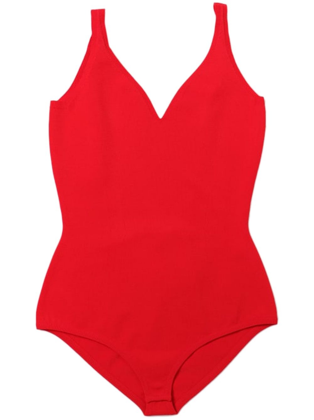 V-neck bodysuit Highlights - Red - Sleeveless - Open back - Just a reminder that this piece must be tried on over your own garments. Made in Italy Composition Viscose 83%, Polyester 17%