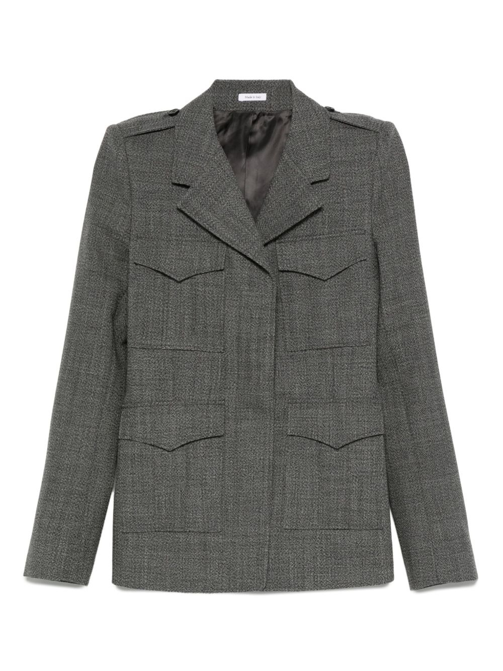 wool jacket Highlights - Grey - Concealed front fastening - Front flap pockets - Notched lapels - Long sleeves Made in Italy Composition Outer: Wool 100% Lining: Cupro 100% SIZE & FIT Model measurements Height 5 ft 10 in(1.79 m) Bust/Chest 31.88 in(81 cm) Hips 35.43 in(90 cm) Waist 23.62 in(60 cm)