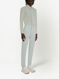tailored wool trousers Highlights - Light blue - Wool - Concealed front fastening - Belt loops - Tapered leg Made in Italy Composition Outer: Wool 100%