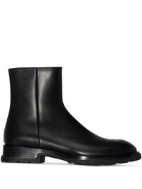 zip-up ankle boots Versatility was kept in mind in the design process of these ankle boots. Courtesy of Alexander McQueen, the leather-made pair is introduced in a classic black hue for a subtle visual identity. Made in Italy Composition Outer: Leather 100% Lining: Leather 100% Sole: Rubber 100% SIZE & FIT Model measurements Height 6 ft 2 in(1.87 m) Bust/Chest 33.46 in(85 cm) Hips 36.22 in(92 cm) Waist 29.52 in(75 cm) FittingInformation This piece fits true to size. We recommend you get your regular size Measurement CIRCUMFERENCE 11.02 in(28 cm) HEEL 1.96 in(5 cm) HEIGHT 6.88 in(17.5 cm) Sole height 0.98 in(2.5 cm)
