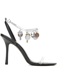 105mm Ariana chain-embellished heeled sandals Highlights - Black - Leather upper - Clear strap - Stiletto heel - Chain ankle strap - Coins and keys embellishments Imported Composition Outer: Thermoplastic Polyurethane (TPU) 100%, Sheepskin 100% Sole: Calf Leather 100% Lining: Sheepskin 100% SIZE & FIT Measurement HEEL 4.13 in(10.5 cm)