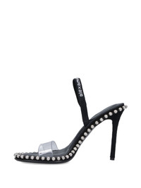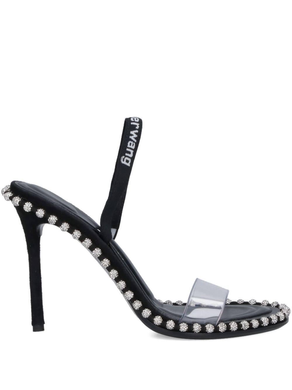 105mm Nova rhinestone-embellished heeled pumps Highlights - Black - Rhinestone embellishment - Ankle strap - Open round toe - Branded insole - Stiletto heel Imported Composition Sole: Calf Leather 100% Lining: Calf Leather 100% Outer: Leather 100% SIZE & FIT Measurement HEEL 4.13 in(10.5 cm)