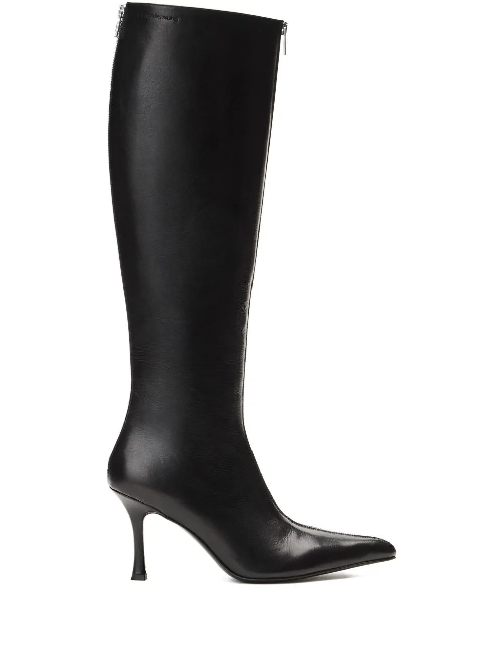 85mm Vera zip-detail pointed-toe boots Highlights - Black - Leather upper - Zip fastening - Pointed toe - Stiletto heel - Knee-high shaft Imported Composition Lining: Calf Leather 100% Outer: Calf Leather 100% Sole: Calf Leather 100%