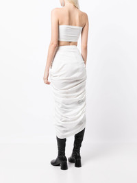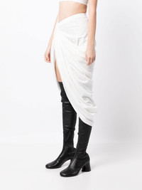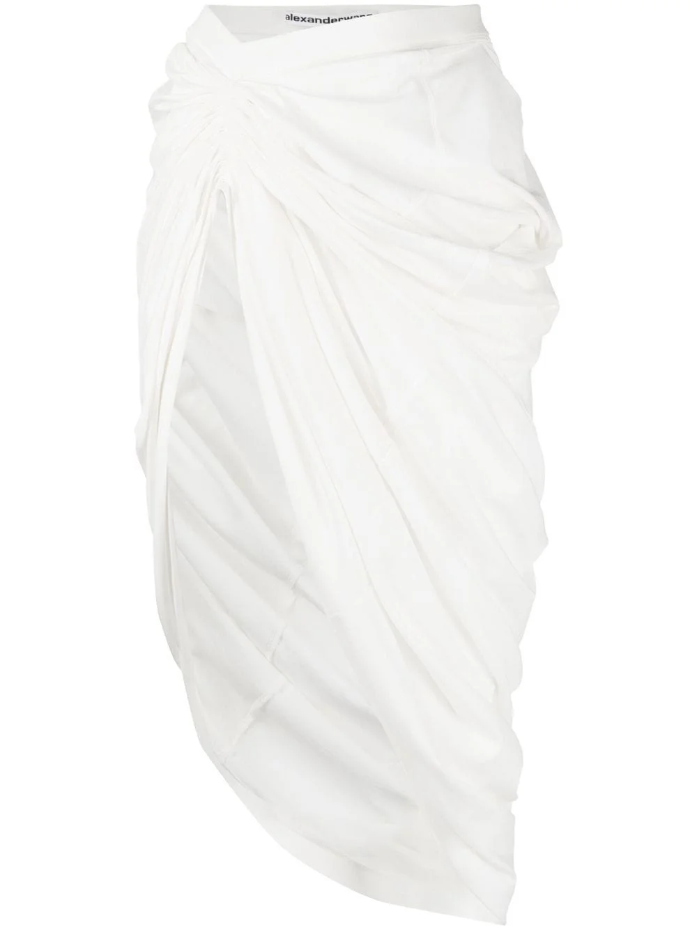 asymmetric midi skirt white cotton asymmetric design mid-rise gathered detailing side slit Imported Composition Cotton 100% SIZE & FIT Model measurements Height 5 ft 9 in(1.76 m) Bust/Chest 31.1 in(79 cm) Hips 35.03 in(89 cm) Waist 24.4 in(62 cm) FittingInformation This piece fits true to size. We recommend you get your regular size Cut for a slim fit Made with a mid-weight fabric Washing instructions Dry Clean Only