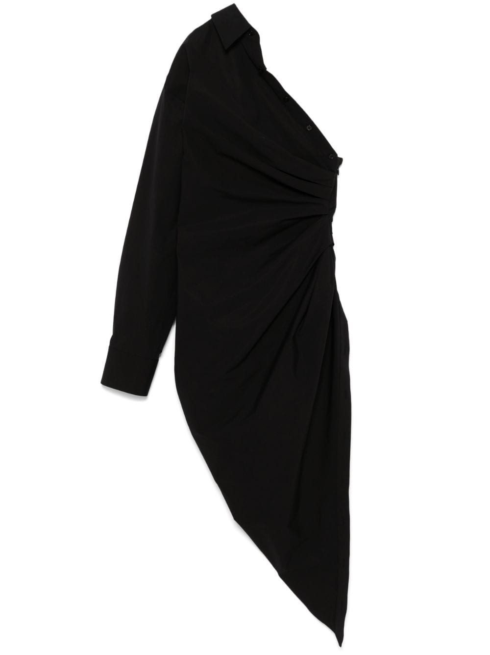 asymmetric mini dress Highlights - Black - Cotton blend - Poplin texture - Concealed side zip fastening - Asymmetric neck - Decorative button detailing - One-shoulder - Long sleeves - Buttoned cuffs - Ruched detailing - Asymmetric hem Imported Composition Cotton 96%, Elastane 4% SIZE & FIT Model measurements Height 5 ft 10 in(1.78 m) Bust/Chest 33.46 in(85 cm) Hips 36.22 in(92 cm) Waist 23.22 in(59 cm) FittingInformation Designed for a slim fit that sits just away from the body offering a close yet comfortable fit The internal briefs provide a close and supportive fit Made from a midweight stretch fabric, this piece offers elasticity and flexibility when worn