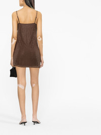 bead-embellished mini dress Alexander Wang knows how to mix urban style with classic silhouettes, and this mini dress showcases that aesthetic perfectly. It's embellished with all-over beads and lace trim. The silk lining is totally removable. Highlights - Chocolate brown - Mesh panelling - Bead embellishment - Lace trim - Square neck - Spaghetti straps - Straight hem - Thigh-length Imported Composition Outer: Polyester 100% Lining: Silk 100% SIZE & FIT Model measurements Height 5 ft 10 in(1.77 m) Bust/Chest 32.67 in(83 cm) Hips 35.43 in(90 cm) Waist 23.62 in(60 cm) FittingInformation Designed for a slim fit that sits just away from the body offering a close yet comfortable fit The adjustable shoulder straps allow for a preferred fit when worn Made from a heavyweight non-stretch fabric Washing instructions Dry Clean Only