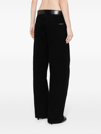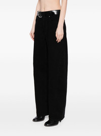 belted-waist wide-leg trousers Highlights - Black - Cotton - Denim - Logo patch to the rear - Silver-tone hardware - Wide leg - Low-rise - Belted waist - Front buckle fastening - Concealed fly and button fastening - Belt loops - Classic five pockets Imported Composition Body: Cotton 100% Trims: Calf Leather 100% SIZE & FIT Model measurements Height 5 ft 9 in(1.76 m) Bust/Chest 31.1 in(79 cm) Hips 35.03 in(89 cm) Waist 24.4 in(62 cm) FittingInformation Designed for a tapered fit, these jeans allow a close fit at the waist and a loose unrestricted fit over the leg with a closer fit towards the ankle The belt offers adjustability for fitted preferences Sturdy and hard-wearing, this denim piece offers no stretch This piece fits true to size – take your usual size