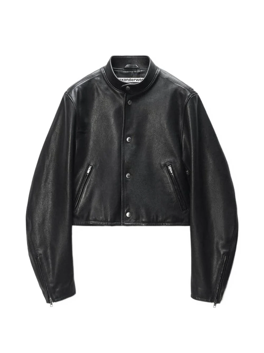 Black Glossy Leather Cropped Moto Jacket