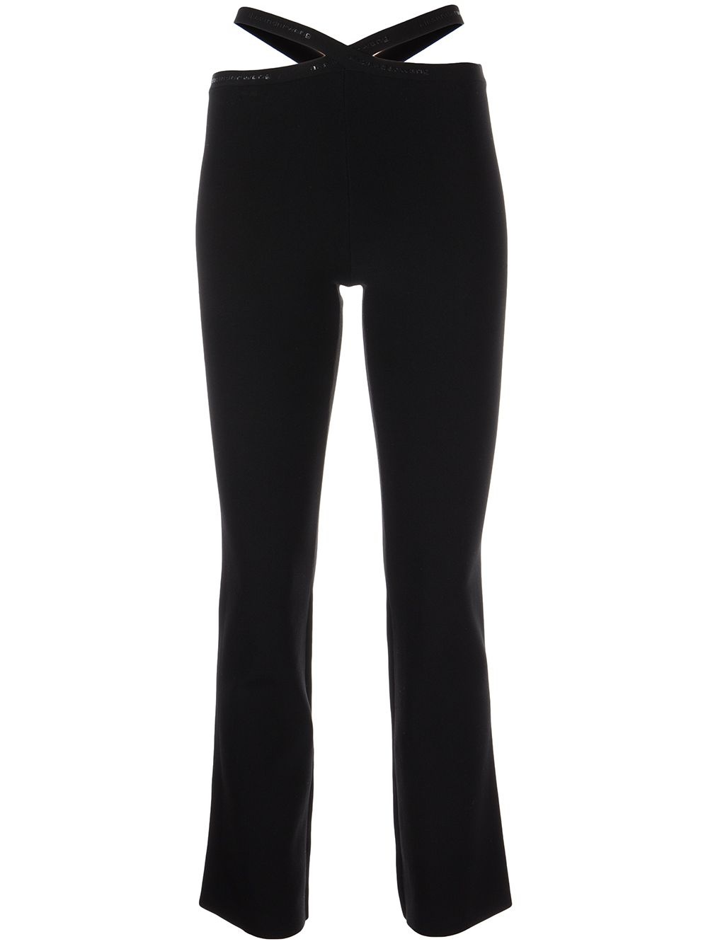 criss-cross logo-trim leggings black logo trim cut-out detailing strap detailing stretch-design ankle-length Made in United States Composition Viscose 60%, Polyamide 38%, Spandex/Elastane 2% SIZE & FIT Model measurements Height 5 ft 10 in(1.79 m) Bust/Chest 29.92 in(76 cm) Hips 34.25 in(87 cm) Waist 24.01 in(61 cm) FittingInformation This piece fits true to size. We recommend you get your regular size Cut for a slim fit Made with a mid-weight stretch fabric