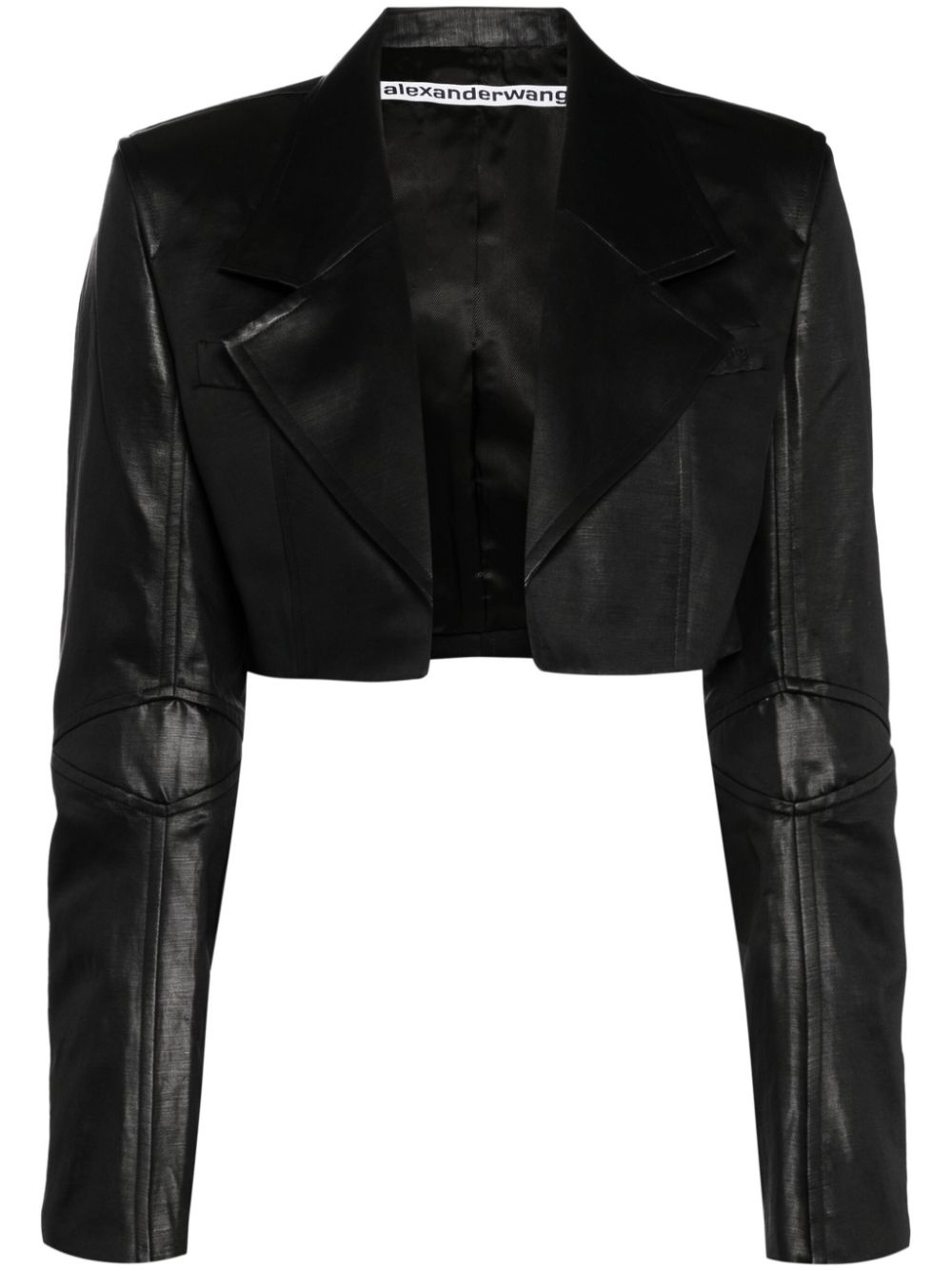 cropped blazer Highlights - Black - Linen blend - Taffeta - Embroidered logo at the chest - Notched lapels - No fastening - Long sleeves - Chest welt pocket - Cropped - Straight hem Made in United States Composition Lining: Viscose 100% Outer: Linen/Flax 52%, Acetate 48% SIZE & FIT Model measurements Height 5 ft 9 in(1.76 m) Bust/Chest 31.1 in(79 cm) Hips 35.03 in(89 cm) Waist 24.4 in(62 cm) FittingInformation Designed for a slim fit that sits just away from the body offering a close yet comfortable fit The internal shoulder pads offer a structured shape Made from a midweight non-stretch fabric This piece fits true to size – take your usual size Washing instructions Dry Clean Only