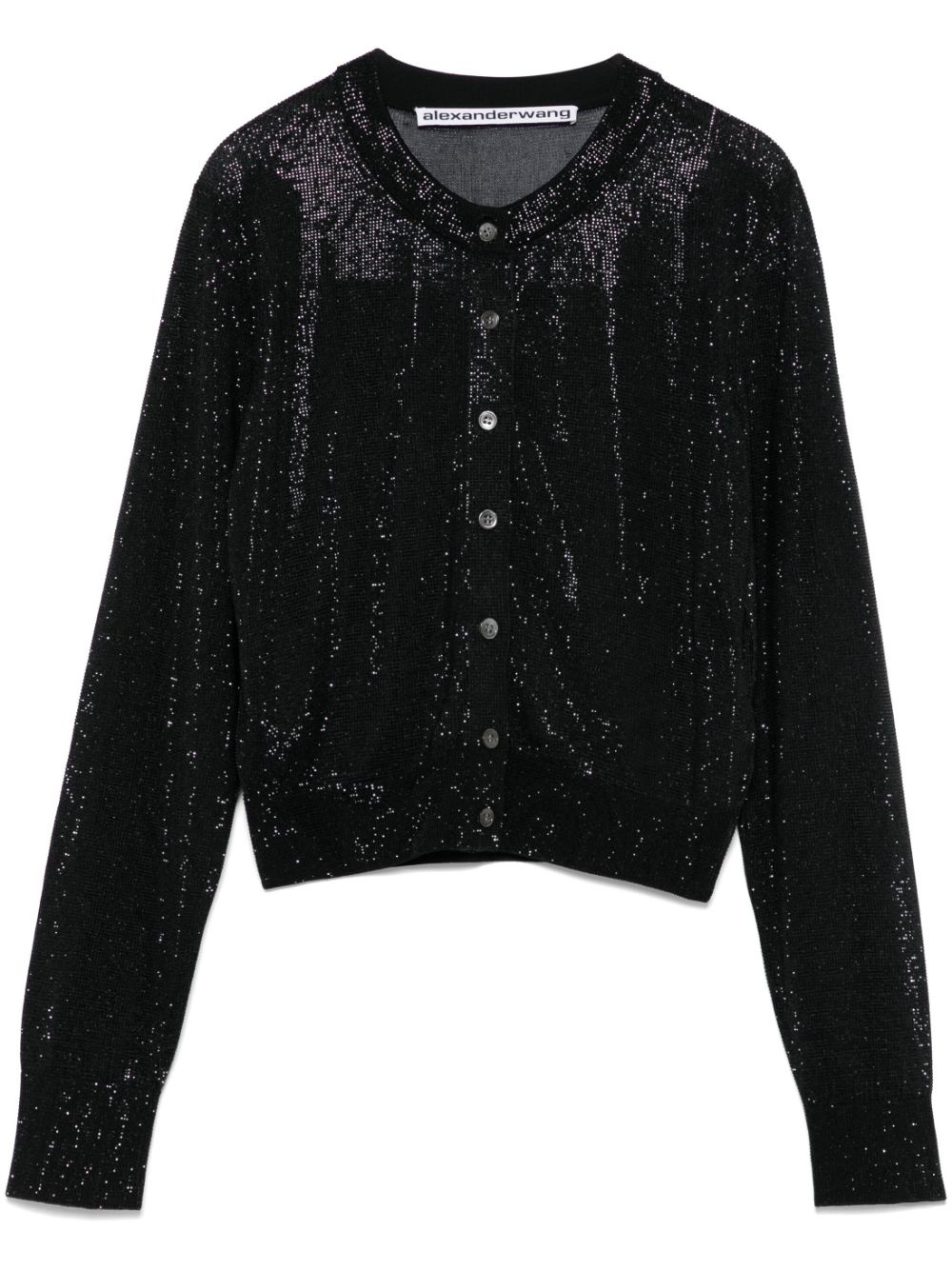 cropped cardigan Highlights - Black - Front button fastening - Ribbed cuffs and hem - Crew neck - Rhinestone embellishment Imported Composition Lining: Viscose 77%, Polyamide 21%, Elastane 2% Outer: Viscose 100% SIZE & FIT Model measurements Height 5 ft 10 in(1.77 m) Bust/Chest 32.28 in(82 cm) Hips 35.03 in(89 cm) Waist 25.19 in(64 cm) FittingInformation Designed for a slim fit that sits just away from the body offering a close yet comfortable fit The ribbed hem offers a close, comfortable fit Made with a midweight knit, this piece offers some stretch