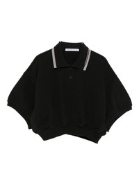 cropped polo top Highlights - Black - Polo collar - Short front button fastening - Short sleeves - Elasticated hem - Logo detail Imported Composition Cotton 100% SIZE & FIT Model measurements Height 5 ft 8 in(1.73 m) Bust/Chest 29.92 in(76 cm) Hips 33.07 in(84 cm) Waist 23.22 in(59 cm) Washing instructions Read Manufacturer Guidelines