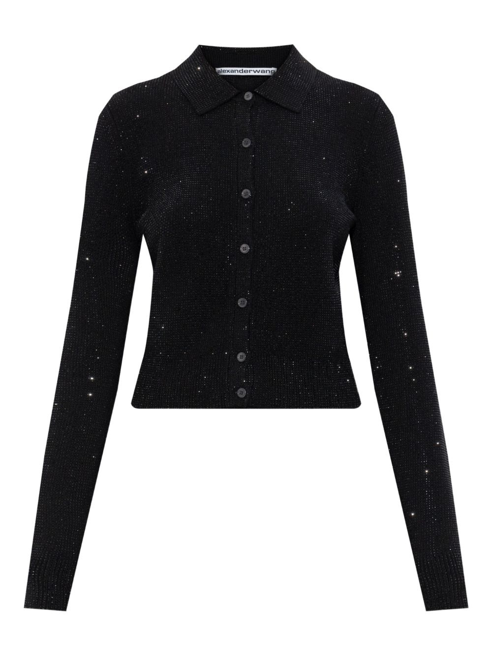 crystal-embellished cardigan Highlights - Black - Polo collar - Button front Imported Composition Wool 92%, Polyamide 7%, Elastane 1% Washing instructions Read Manufacturer Guidelines