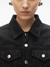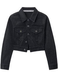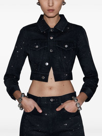 crystal-embellished denim jacket Highlights - Black - Washed denim - Crystal embellishment - Front button fastening - Spread collar - Long sleeves - Two chest flap pockets - Buttoned cuffs - Cropped - Straight hem Made in Italy Composition Fabric 100%