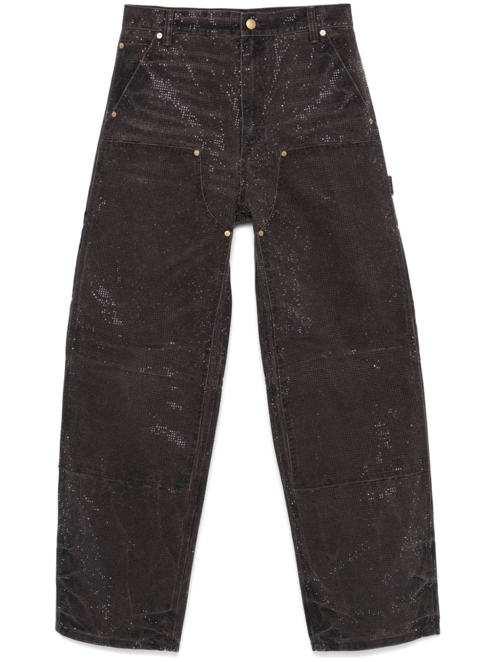 crystal hotfix high waisted workwear carpenter pants in cotton
