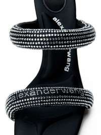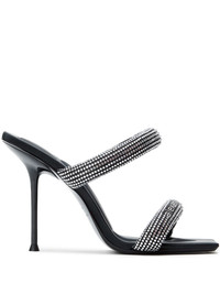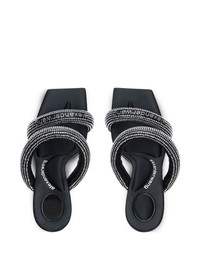 crystal-embellished stiletto sandals Highlights - Black - Stiletto heel - Double straps - Crystal embellishment - Square toe - Open toe Imported Composition Outer: Fabric 100% Sole: Leather 100%
