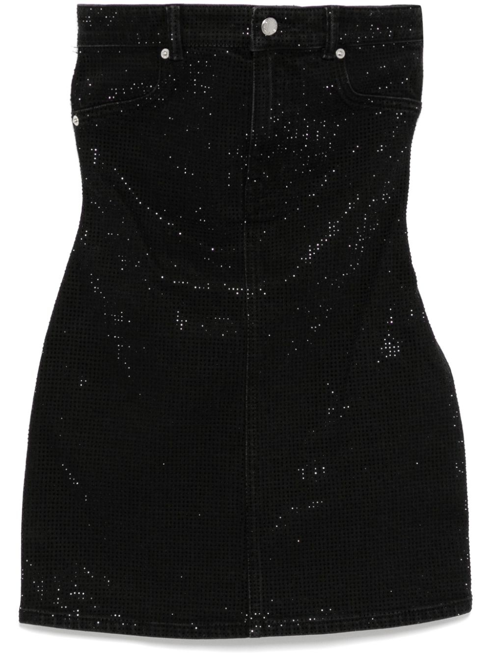 crystal embellishment denim dress Highlights - Black - Concealed side hook and zip fastening - Strapless - Sleeveless - Straight hem Imported Composition Cotton 54%, Lyocell 45%, Elastane 1% SIZE & FIT Model measurements Height 5 ft 10 in(1.77 m) Bust/Chest 31.49 in(80 cm) Hips 35.43 in(90 cm) Waist 25.19 in(64 cm) FittingInformation Designed for a close fit throughout Slightly short in length; consider your own measurements Sturdy and hard-wearing, this denim piece offers no stretch Washing instructions Dry Clean Only