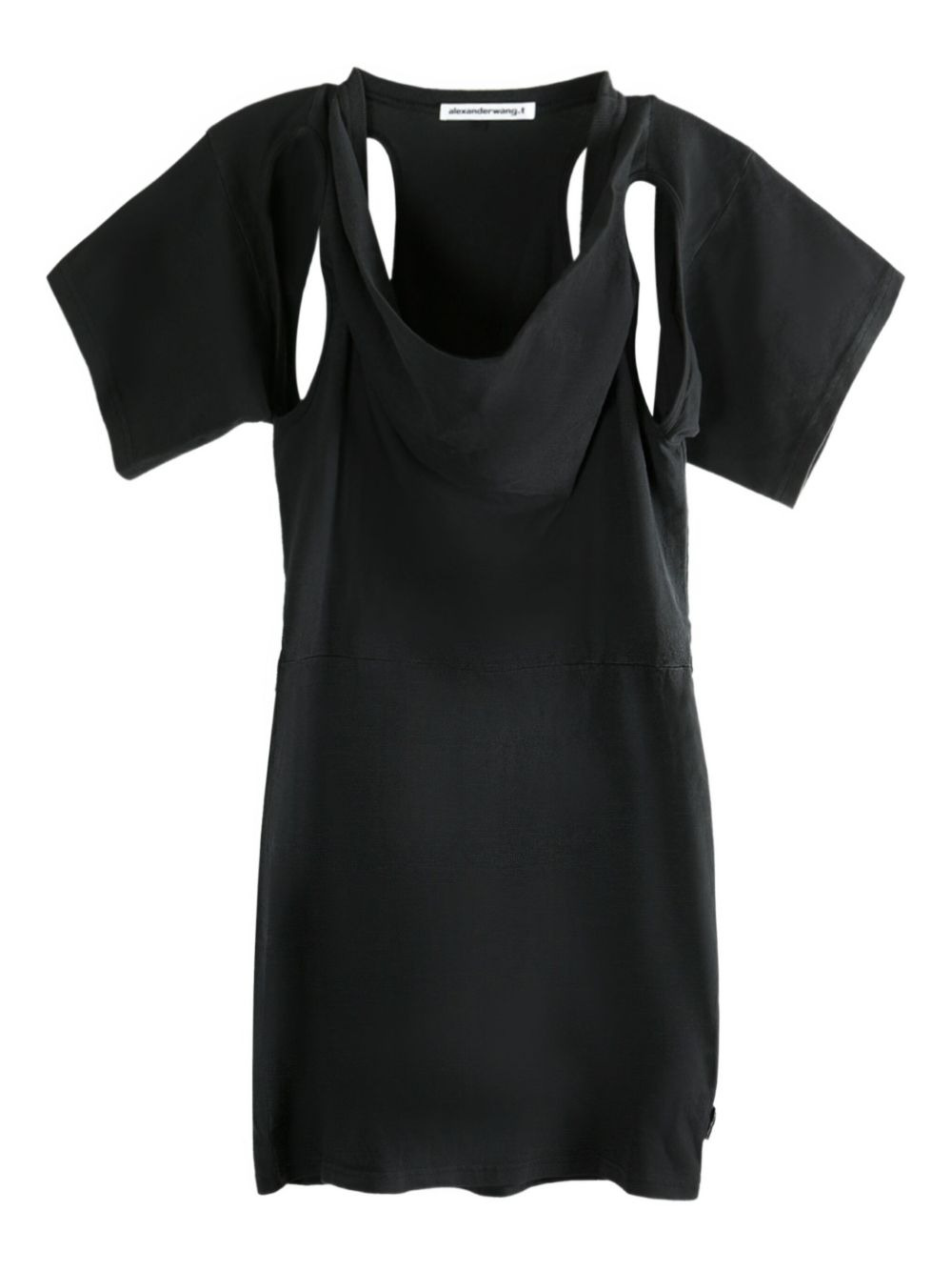 cut-out draped mini dress Highlights - Black - Draped neckline - Cut-out shoulder detail - Short sleeves Imported Composition Organic Cotton 100% Washing instructions Read Manufacturer Guidelines
