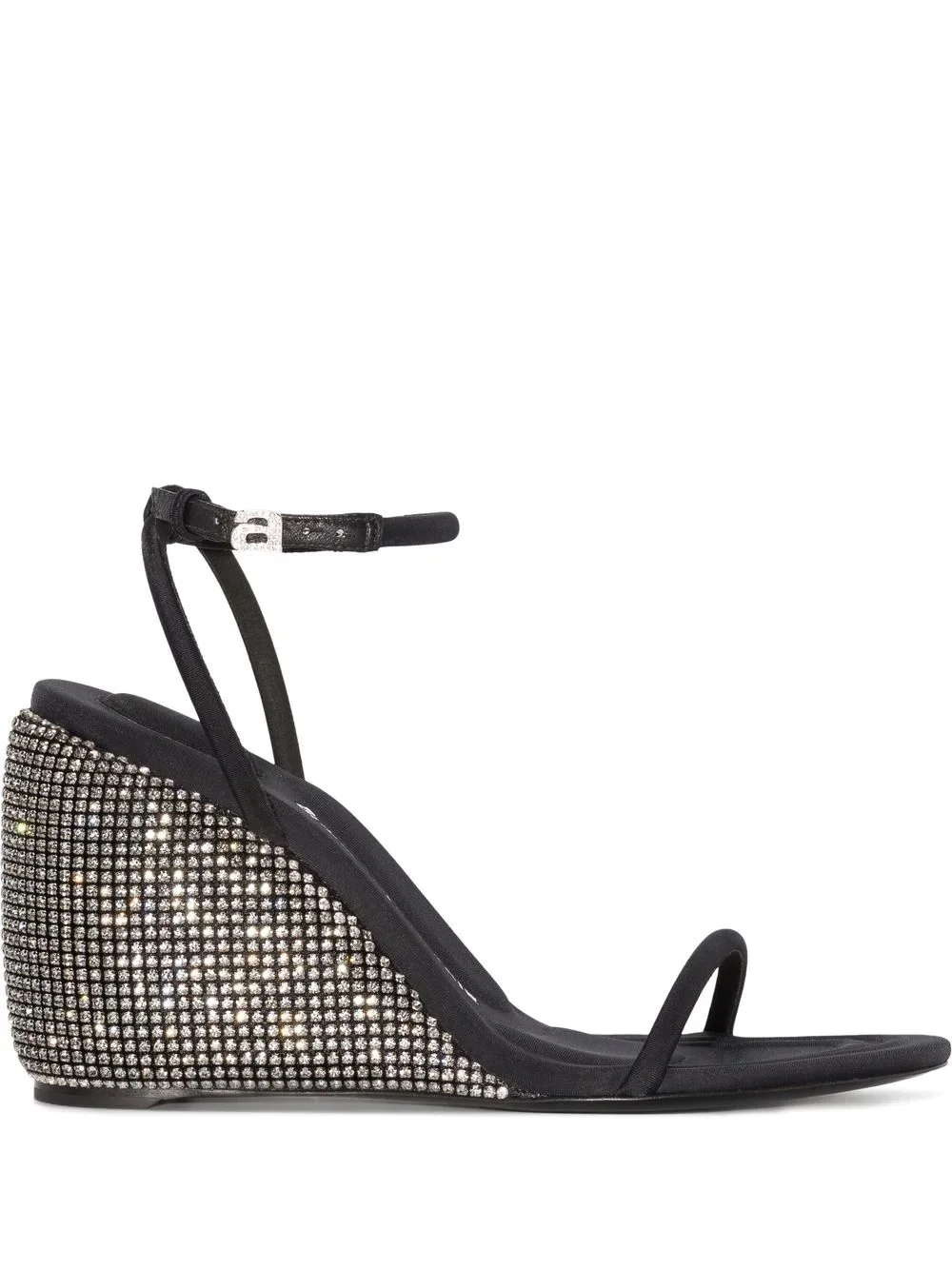 Dahlia crystal-embellished wedge 105mm sandals Dahlia crystal-embellished wedge 105mm sandals from ALEXANDER WANG featuring black, leather, crystal embellishment, high wedge heel, buckle-fastening ankle strap and branded leather insole. Made in Italy Composition Sole: Leather 100% Outer: Fabric 100% Lining: Fabric 100% SIZE & FIT Model measurements Height 5 ft 7 in(1.71 m) Bust/Chest 31.88 in(81 cm) Hips 34.64 in(88 cm) Waist 23.22 in(59 cm) FittingInformation This piece fits true to size. We recommend you get your regular size Measurement HEEL 4.13 in(10.5 cm)