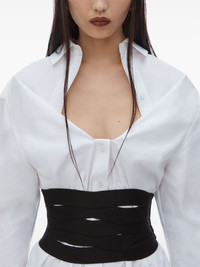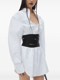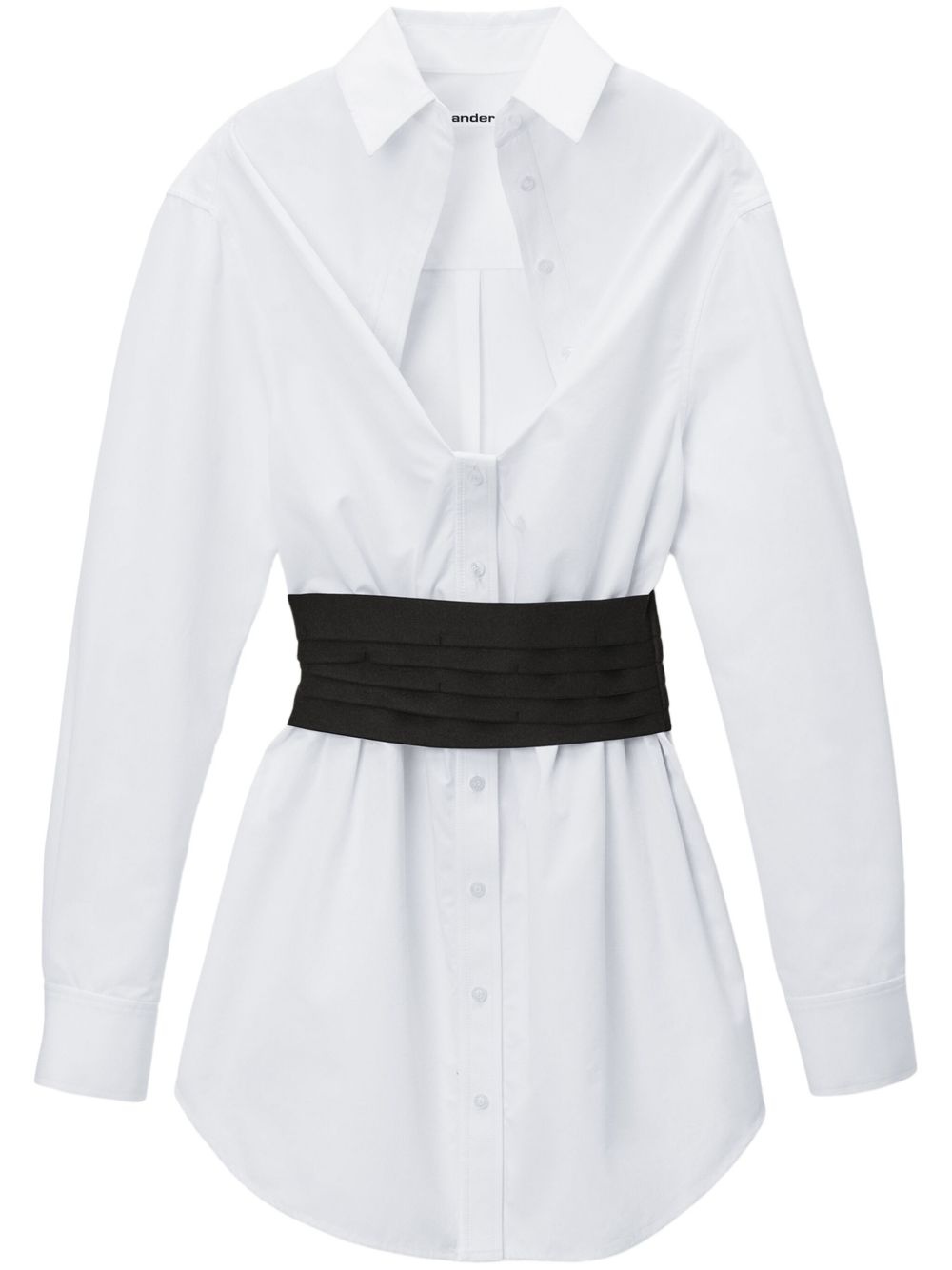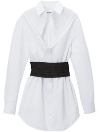 Deconstructed mini dress Highlights - White - Front button fastening - Belted waist - Scoop neck - Buttoned cuffs Imported Composition Cotton 100%, Polyester 85%, Spandex/Elastane 15%