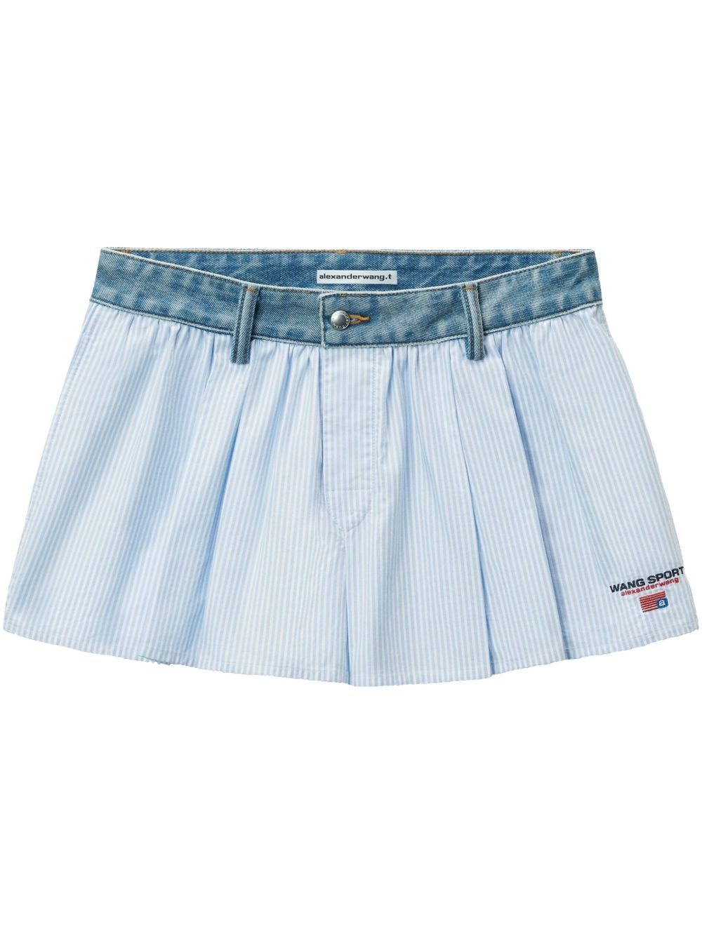 denim waist shorts Highlights - Blue - Button fly fastening - Two side slash pockets - Belt loops - Embroidered logo to the side - Pleat detailing Imported Composition Outer: Cotton 100% Lining: Cotton 100% Washing instructions Read Manufacturer Guidelines