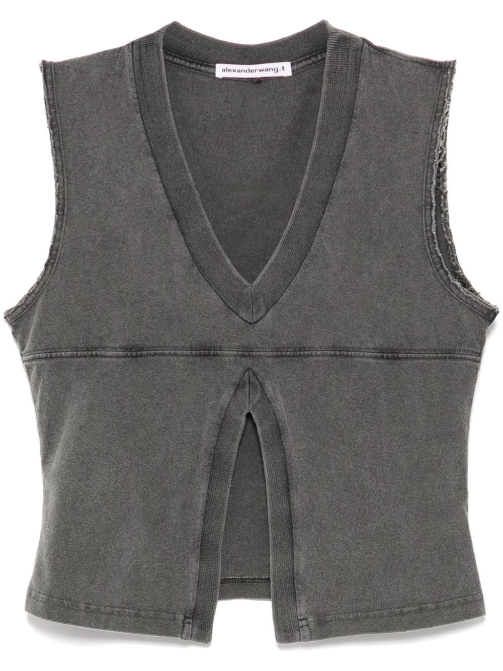 double v-neck tank top Highlights - Dark grey - Sleeveless - Raw edge Imported Composition Cotton 100% SIZE & FIT Model measurements Height 5 ft 10 in(1.77 m) Bust/Chest 31.49 in(80 cm) Hips 35.43 in(90 cm) Waist 25.19 in(64 cm) FittingInformation Designed for a slim fit that sits just away from the body offering a close yet comfortable fit Made from a midweight non-stretch fabric, this piece offers minimal elasticity when worn
