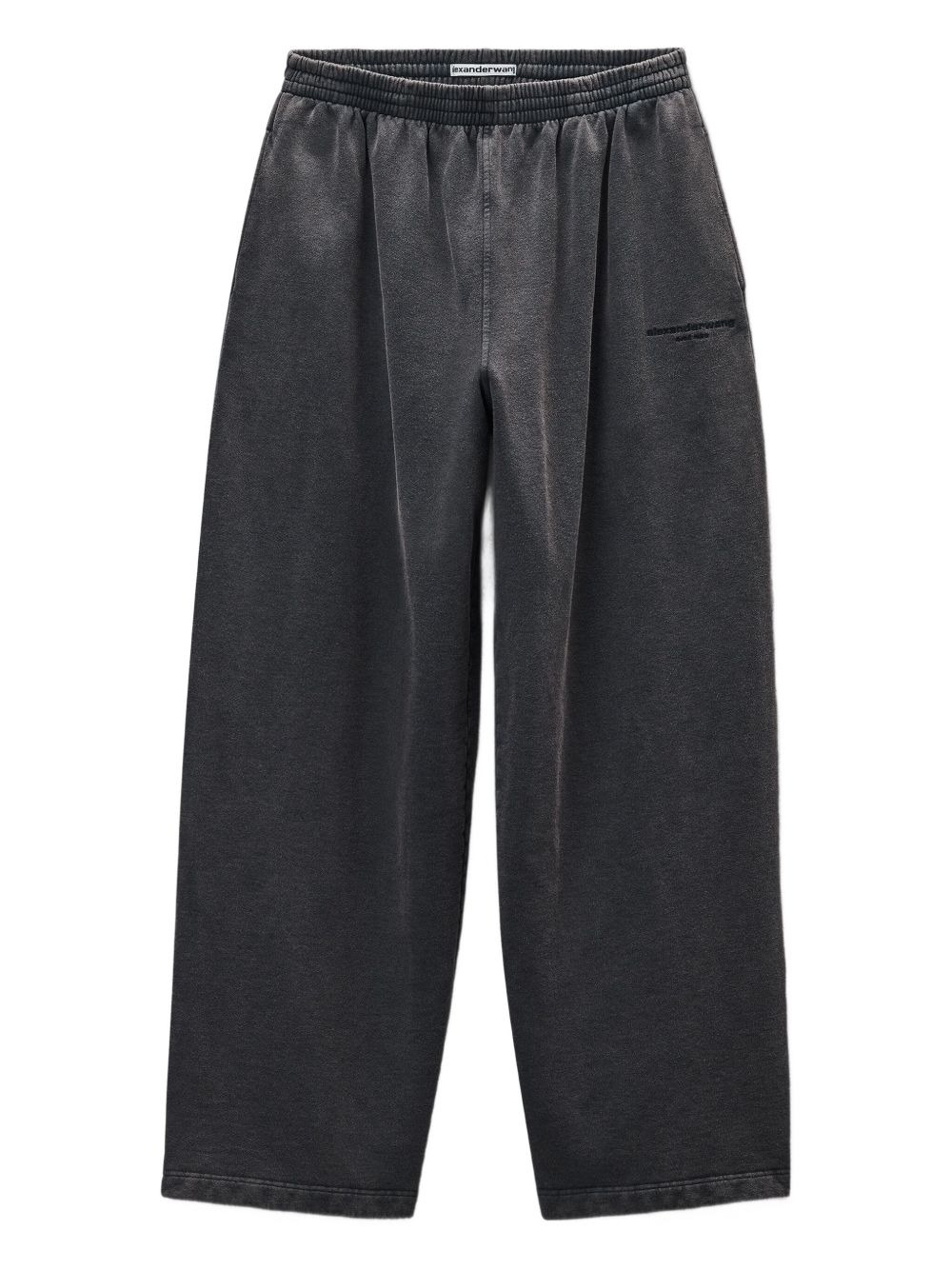 elastic-waist track pants Highlights - Grey - Mid-rise waist - Elasticated waistband - Wide leg - Straight hem - Logo detail Imported Composition Cotton 75%, Polyester 25% Washing instructions Read Manufacturer Guidelines