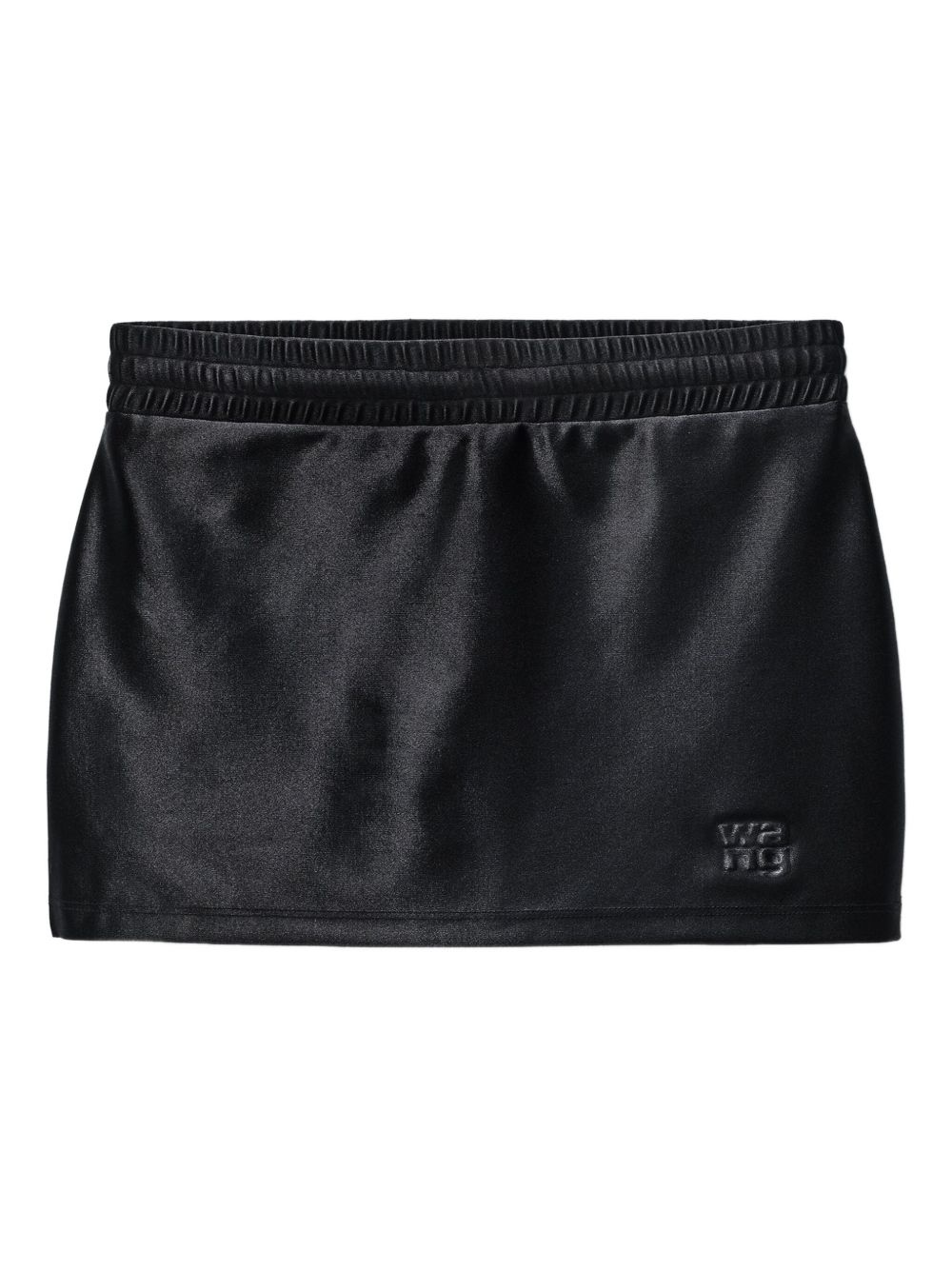 elasticated-waistband satin skirt Highlights - Black - Satin finish - Elasticated waistband - Mini length - Logo detail - Straight hem Imported Composition Wool 86%, Polyamide 9%, Elastane 5% Washing instructions Read Manufacturer Guidelines
