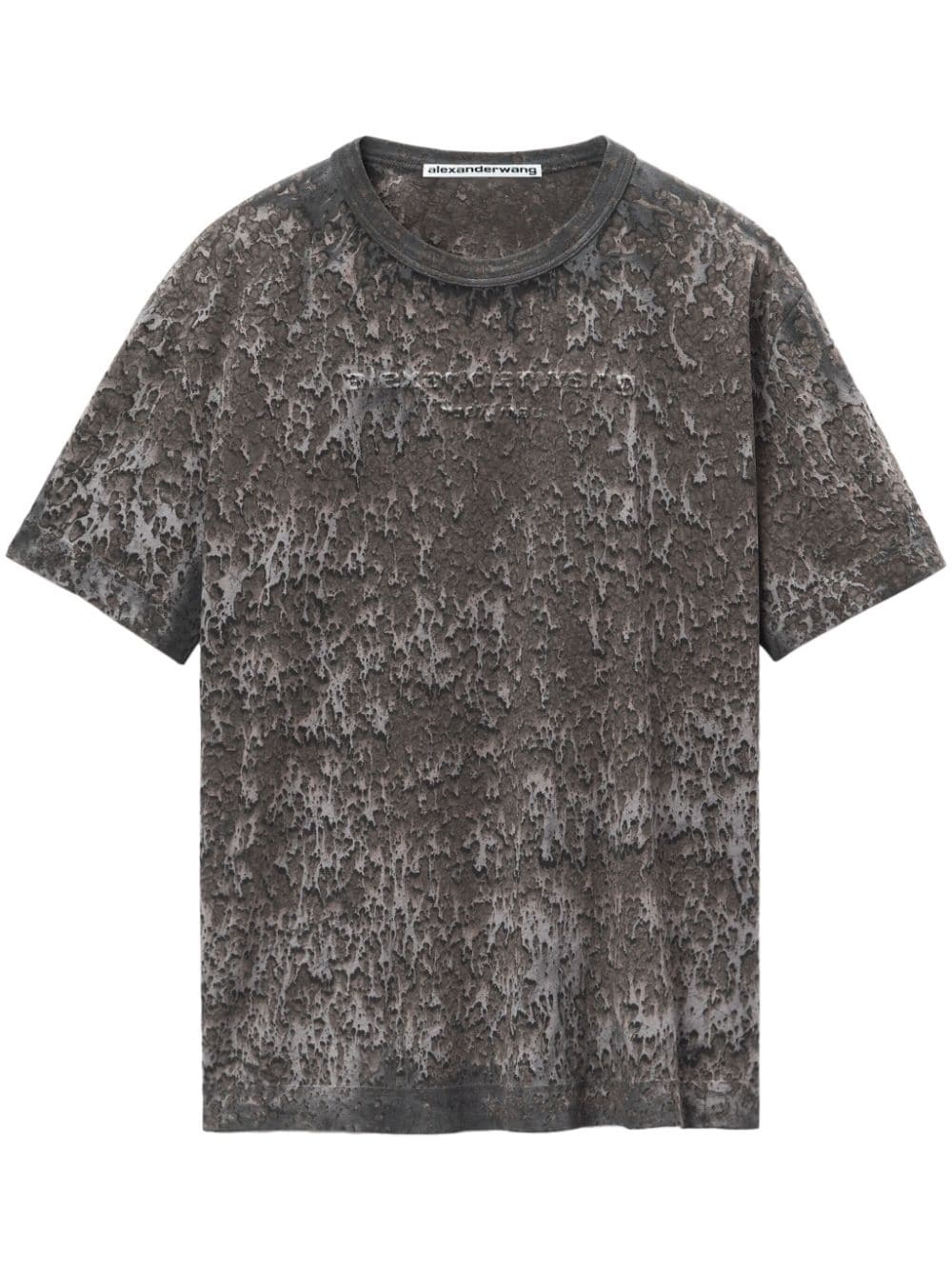 embossed-logo paint-splatter T-shirt Highlights - Charcoal grey - Embossed logo to the front - Paint splatter detail - Crew neck - Short sleeves - Straight hem - When buying this unisex item, keep in mind that it is graded in standard men's sizing. Imported Composition Cotton 100%