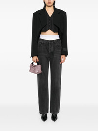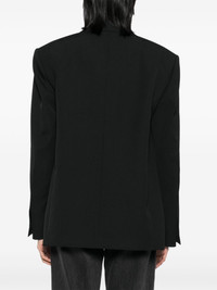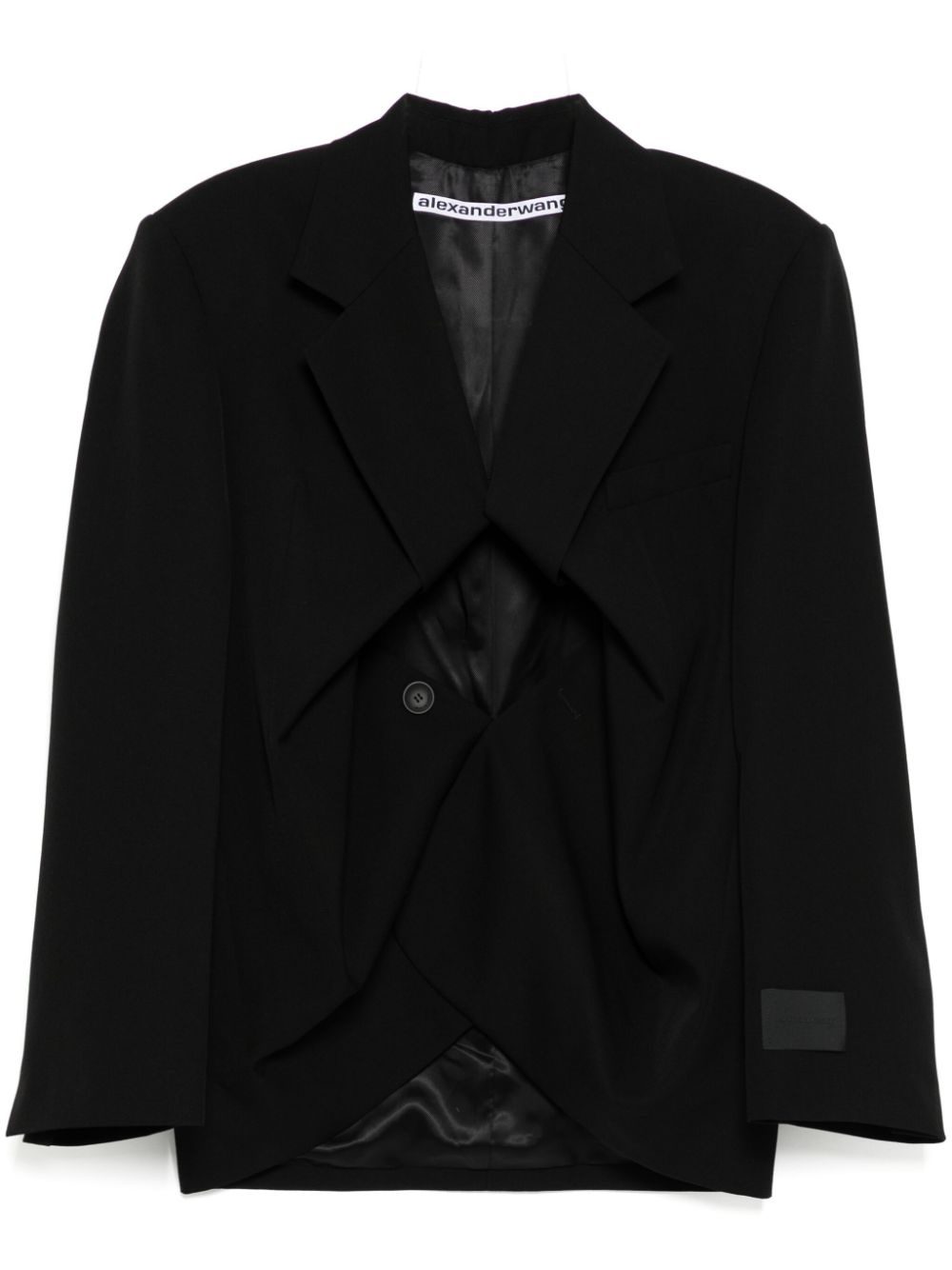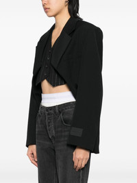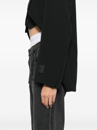 exaggerated split front blazer Highlights - Black - Hook and eye fastening - Sleeve patch pocket Imported Composition Lining: Viscose 100% Outer: Wool 100% SIZE & FIT Model measurements Height 5 ft 10 in(1.77 m) Bust/Chest 31.49 in(80 cm) Hips 35.43 in(90 cm) Waist 25.19 in(64 cm) FittingInformation Designed for a boxy fit, intended for a loose fit throughout The internal shoulder pads offer a structured shape Made from a midweight non-stretch fabric
