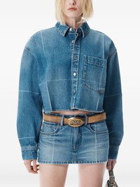 Vintage-Effect Marbled Blue Denim Cropped Shirt