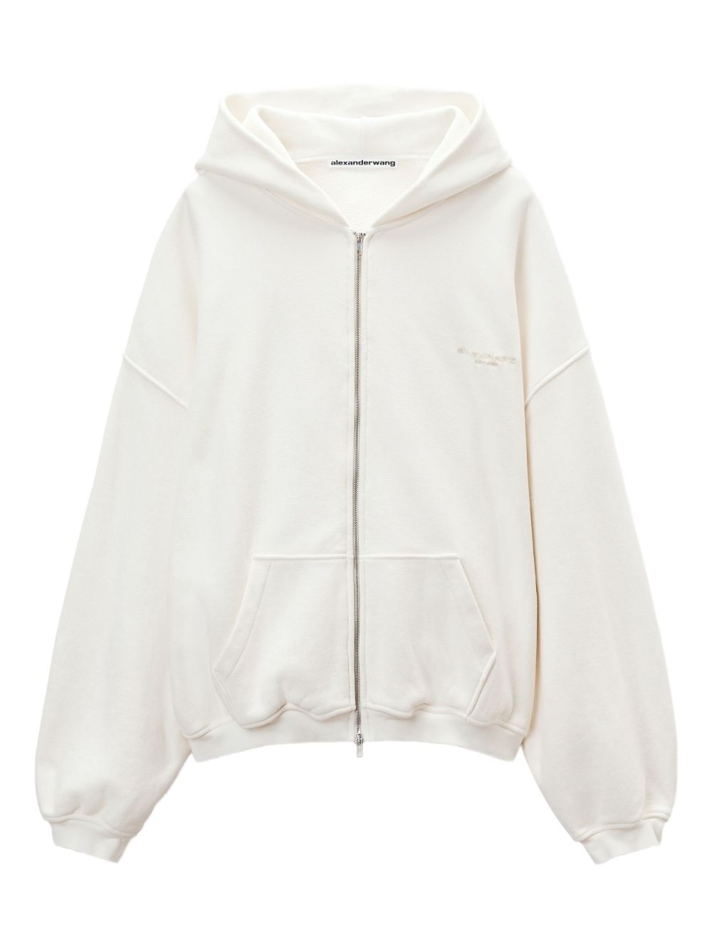 zip-up hooded jacket Highlights - White - Front two-way zip fastening - Two front pouch pockets Imported Composition Cotton 99%, Elastane 1% Washing instructions Read Manufacturer Guidelines