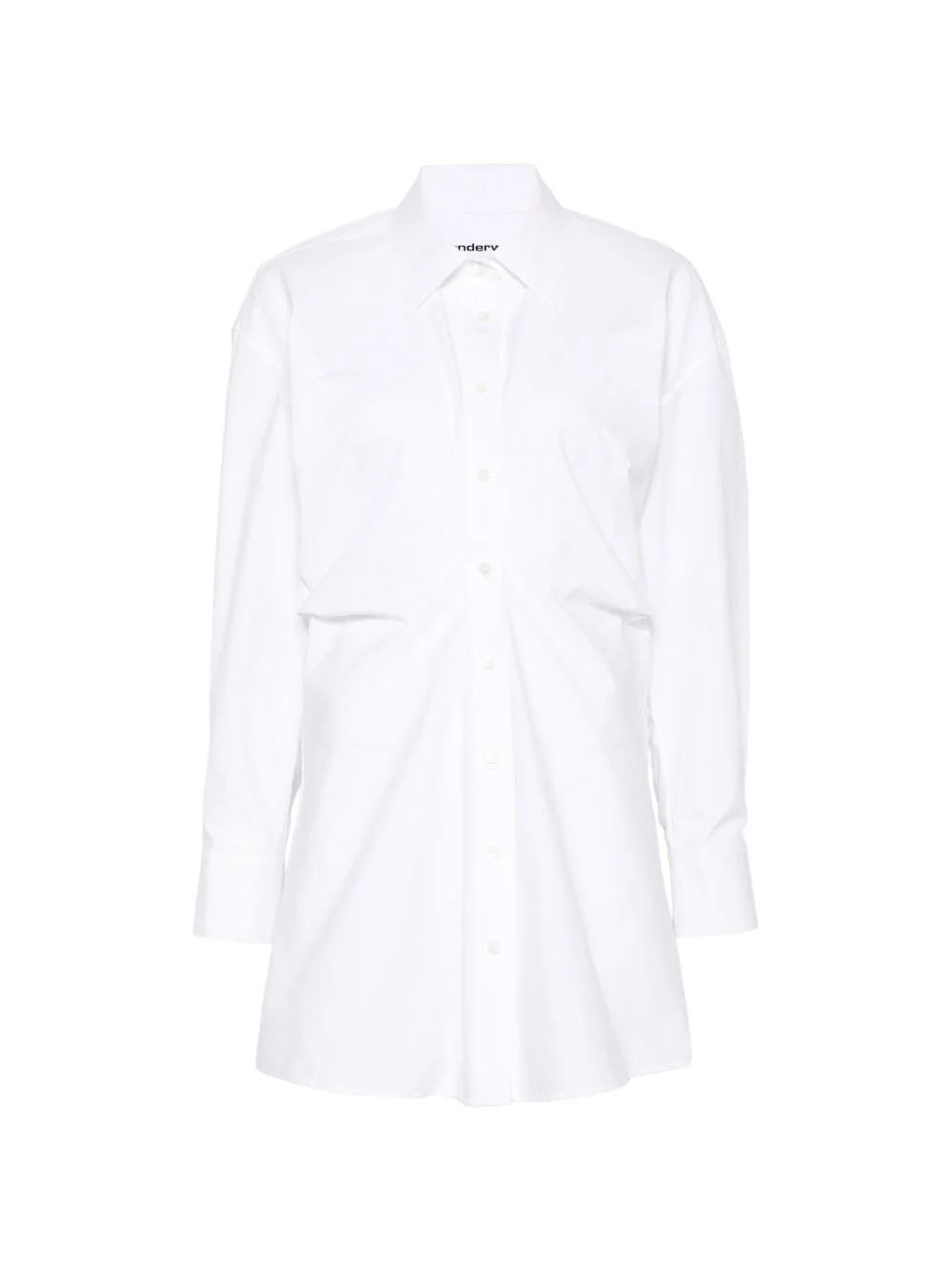 gathered-detail shirt-style mini dress Highlights - White - Gathered detail - Zip fastening - Polo collar Imported Composition Cotton 96%, Elastane 4% Washing instructions Dry Clean Only