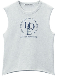 graphic stamp t-shirt Highlights - Light grey - Crew neck - Sleeveless - Stamp-effect graphic print - Cropped Imported Composition Cotton 100% SIZE & FIT Measurement LENGTH 24.8 in(63 cm) BUST 45.66 in(116 cm) Shoulder Width 22.04 in(56 cm)