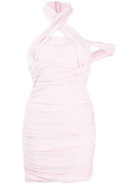halterneck asymmetric mini dress Highlights - Light pink - Stretch-design - Ruched bodice - Asymmetric design - Halterneck - Sleeveless - Bodycon design - Thigh-length - Straight hem Imported Composition Acetate 66%, Polyester 25%, Spandex/Elastane 9% SIZE & FIT Model measurements Height 5 ft 10 in(1.79 m) Bust/Chest 29.92 in(76 cm) Hips 34.25 in(87 cm) Waist 24.01 in(61 cm) FittingInformation This piece fits true to size. We recommend you get your regular size Cut for a close fit Made with a mid-weight stretch fabric