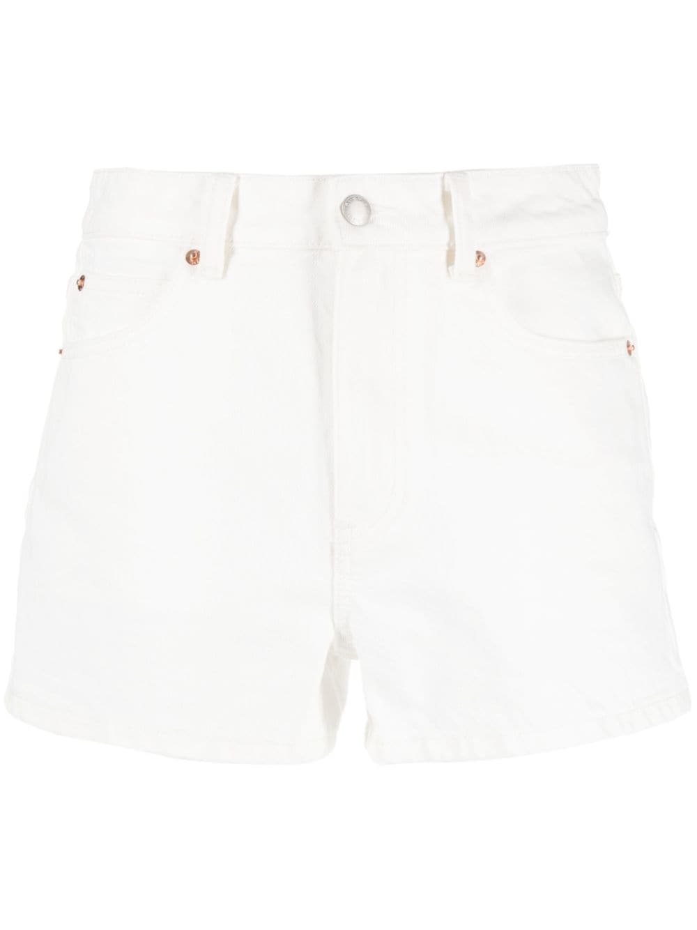 high-rise denim mini shorts Highlights - White - Cotton - Denim - Logo patch to the rear - High waist - Belt loops - Concealed fly and button fastening - Classic five pockets - Thigh-length Imported Composition Cotton 100% SIZE & FIT Model measurements Height 5 ft 9 in(1.76 m) Bust/Chest 33.07 in(84 cm) Hips 34.64 in(88 cm) Waist 25.59 in(65 cm) FittingInformation Designed for a relaxed, roomy fit Sturdy and hard-wearing, this denim piece offers no stretch This piece fits true to size – take your usual size